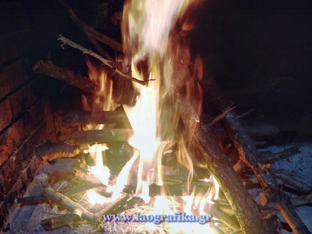 Σε πολλά μέρη, έριχναν στη φωτιά φυτά που όταν έπαιρναν φωτιά έκαναν θόρυβο. Επίσης, ενώ “σταύρωναν” τη φωτιά τρεις φορές, έριχναν πάνω της κόκκινο κρασί και λάδι. Σημαντικό ήταν, επίσης το ποιος θα ερχόταν πρώτος σε επαφή με την ιερή αυτή φωτιά. Πολλοί επέλεγαν ένα παιδί της οικογένειας που θεωρούσαν τυχερό και του έδιναν ένα μακρύ ραβδί, μιά μασιά να την ανακατεύει. Την ώρα που την ανακάτευε, έλεγε και μια ευχή που αντιπροσώπευε την ελπίδα των αγροτών: για τα κατσίκια, τα αρνιά, το σιτάρι, το λάδι, τη βρώμη, τα ....χρήματα, κ.α.
